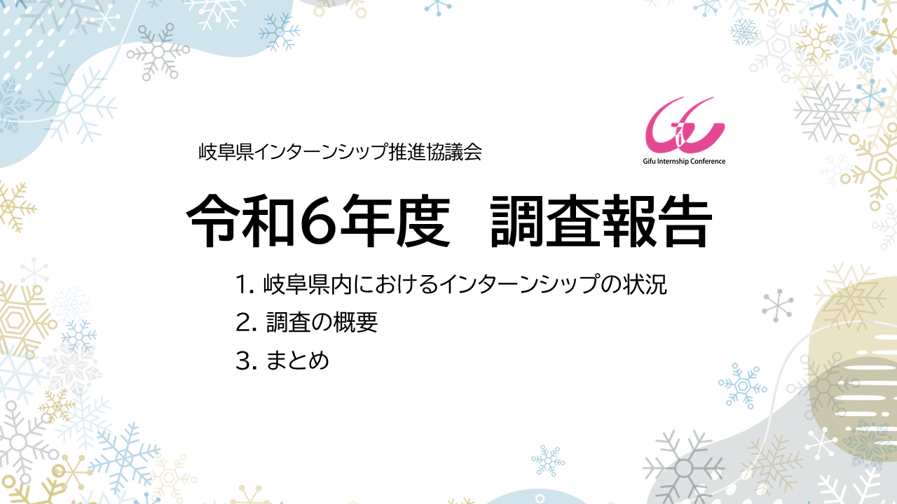 令和6年度10月末時点における参加学生数などの集計状況や、岐阜県インターンシップ推進協議会で実施した5つのアンケート調査についてご紹介します。