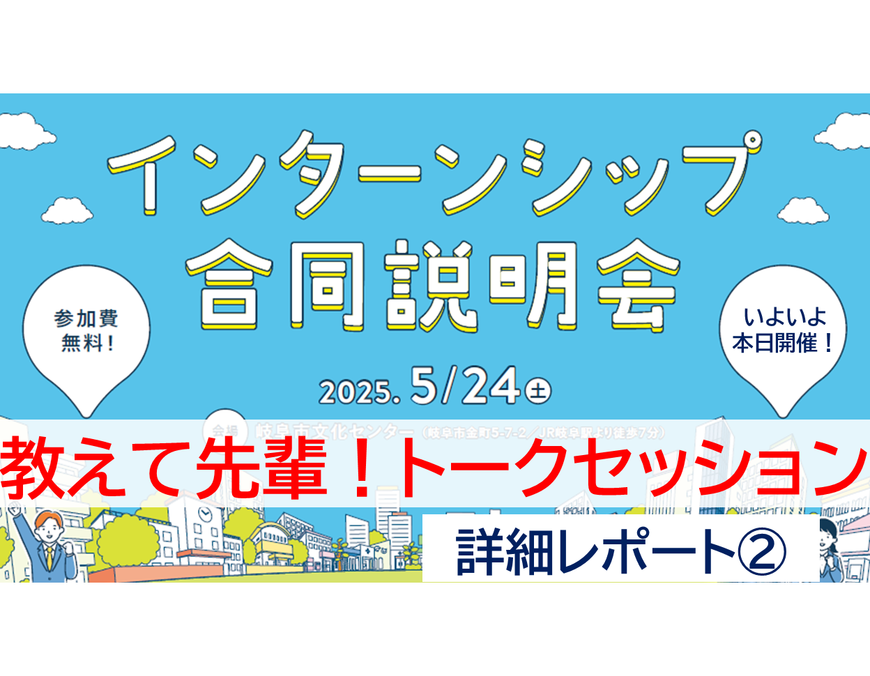 令和7年度に初めて開催した「インターンシップ・トークセッション」。岐阜県(人事課)、西濃運輸株式会社、中部薬品株式会社の3事業所にご参加いただき開催しました。その様子をくわしくご紹介します。